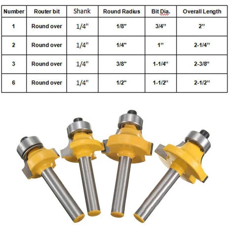 4pcs x 6.35mm Queue Routeur de Arrondi ​Co