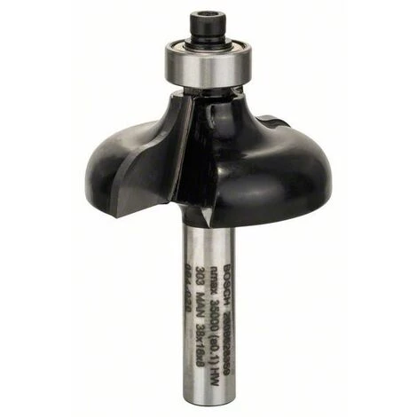 Fraise à profiler G 8 mm, R1 6,35 mm, D 38 mm, L 15,7 mm, G 57 mm, Pour l’usinage des arêtes (corps de meuble, étagère, châssis) et pour la réalisation de moulures (corniche, structure), Avec roulement à billes pour un guidage aisé contre la pièce, Fraises à profiler Bosch pour travaux de menuiserie de grande qualité