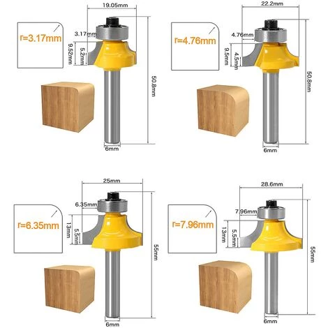 Rayon de Lame:3.17mm, 4.76mm, 6.35mm, 7.96mm(1/8″, 3/16″, 1/4″, 5/16″)