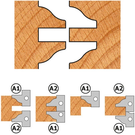 Conçus pour la réalisation de portes, ces jeux vous permettront de utiliser 5 différents plaquettes pour produire des profils classiques. La fraise réglable (incluse) peut être aussi utilisée pour des fraisages avec épaisseur 8-15mm.