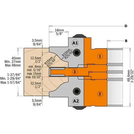 À utiliser avec des toupies. Résultat parfait sur bois tendre, dur et panneaux avec une épaisseur maximum de 48mm.