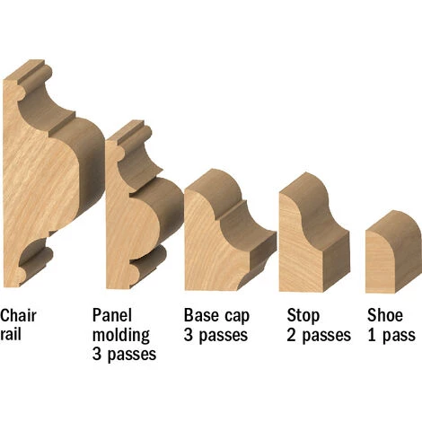 Ce système spĂ©cial CMT permet de crĂ©er des profils du plus simple au plus recherchĂ©. Il est possible de rĂ©aliser des douzaines de profils dont l’originalitĂ© et la recherche croissent avec le nombre de passages de la fraise.