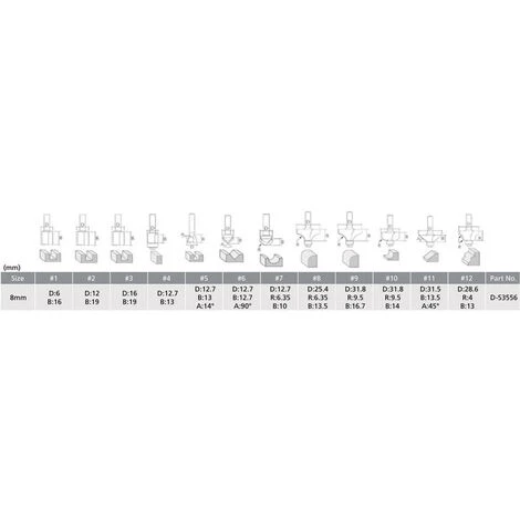 Set de 12 fraises Makita adaptables sur dĂ©fonceuse-affleureuse – D-53556