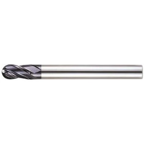 Fraise bout hĂ©misphĂ©rique longue 4 dents, queue HA, carbure monobloc, revĂȘtement TiAIN Ă d1 = h10 : 12,0 mm, Longueur totale l1 110 mm, Longueur de coupe l2 22 mm, DiamĂštre de la queue d2 = h6 : 12 mm – Carbure monobloc UF – Type N – Norme d’usine – Pour le fraisage par copiage, de finition, le rognage, le contournage – Usinage HSC jusqu’Ă une duretĂ© de 62 HRC max. – Usinage Ă sec possible