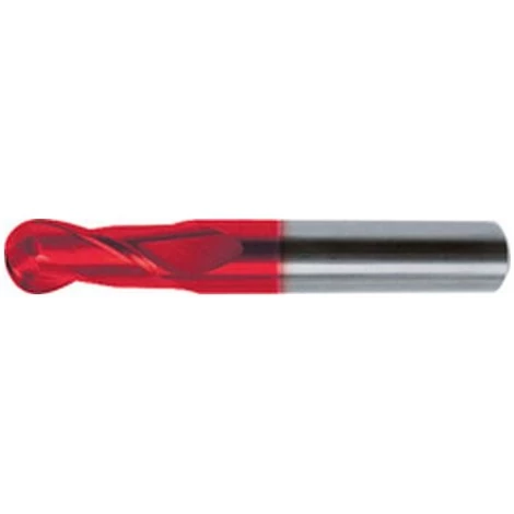 Fraise à rayon, longue, type N, queue DIN 6353-HA, carbure monobloc UF, surface à revêtement FIRE Ø d1 = h10 : 3,0 mm, Longueur totale I1 57 mm, Longueur de coupe l2 7 mm, Diamètre de la queue d2 = h6 : 6 mm – Carbure monobloc UF – Type N – DIN 6527 – Pour le fraisage de copiage, de fentes, l’usinage universel – Usinage à sec possible