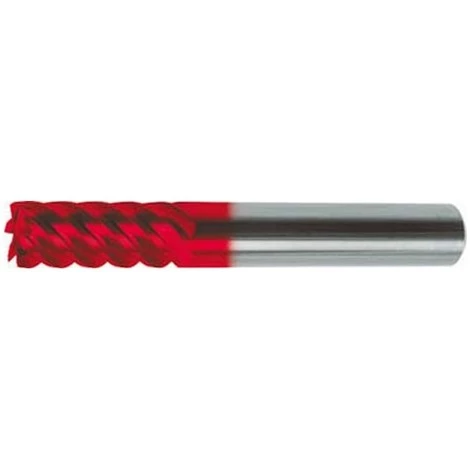 Fraise cylindrique longue, type NH, en carbure monobloc SL et carbure monobloc UF, DIN 6527, FIRE Ă d1 = h10 : 12,0 mm, Longueur totale l1 83 mm, Longueur de coupe l2 26 mm, DiamĂštre de la queue d2 = h6 : 12 mm, Nombre de dents : 6 – Carbure monobloc UF – Type NH – DIN 6527 L – Avec coupe centrale – Utilisable pour le fraisage de pourtour, le rognage et les dĂ©coupes fines – Usinage Ă sec possible