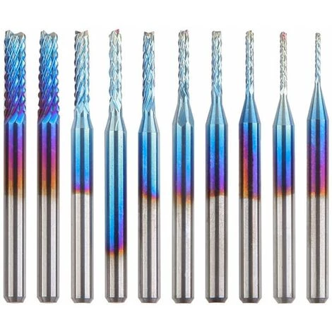 Comprend 10 tailles diffĂ©rentes de fraises pour rĂ©pondre Ă vos diffĂ©rents besoins — 0,8/1,0/1,2/1,4/1,6/1,8/2,0/2,4/3,0/3,175 mm.