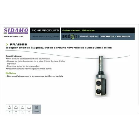 Mecabois – Fraise Ă copier droite Ă 2 plaquettes rĂ©versibles avec guide Ă bille