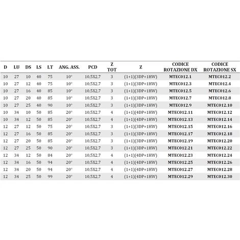 Fraise en diamant Z1+1, 3 divisions en hélice, premiÚre plaquette positive, plaquettes restantes négatives.
