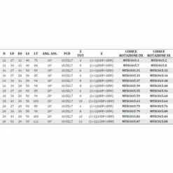 Fraise en diamant Z2+2, 4 divisions en hélice, première plaquette positive, plaquettes restantes négatives.