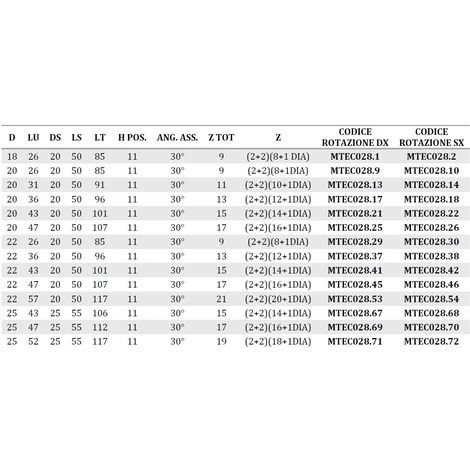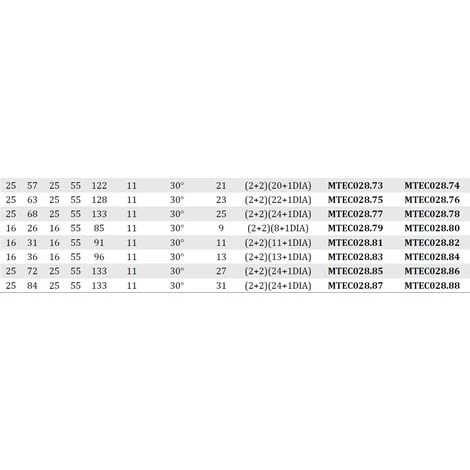 Fraise en diamant Z2+2, 4 divisions en hélice, premiÚre plaquette positive 11 mm, plaquettes restantes négatives.