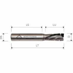 Fraise en diamant Z2+2, avec plaquette H3,5mm, 2 divisions en hélice, premiÚre plaquette positive tractrice avec plaquettes restantes négatives.
