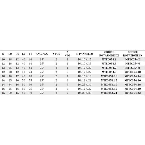 Outil de perçage en carbure, angle axial 25°+/-.