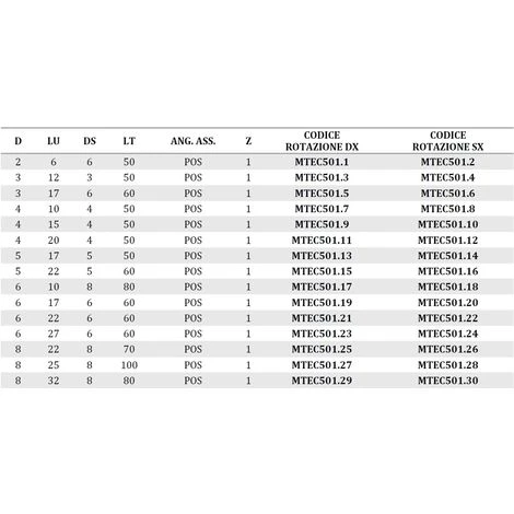Fraise hélicoïdale en carbure avec taillant positif Z1.