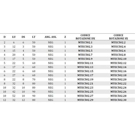 Fraise hélicoïdale en widia avec taillant négatif Z1.