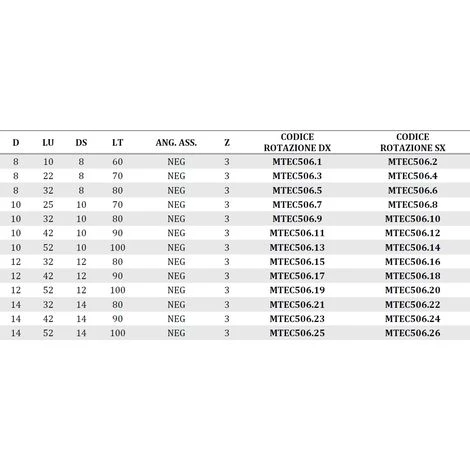 Fraise hélicoïdale en widia avec taillant négatif Z3.