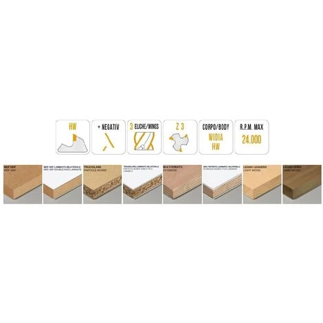 Fraise hélicoïdale en widia avec taillant positif / négatif Z3+3.