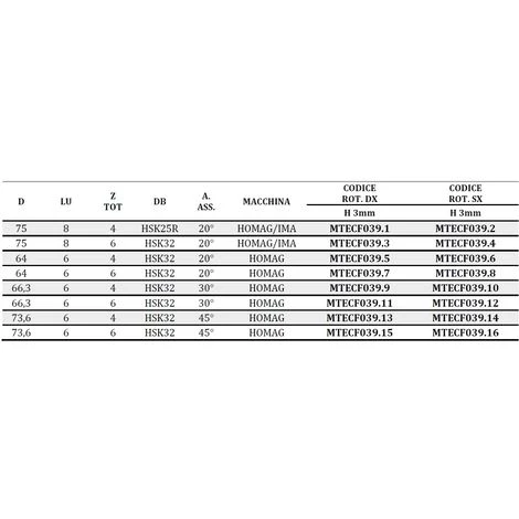 Fraise en diamant pour rogner et biseauter les panneaux bordés sur les bordeuses.