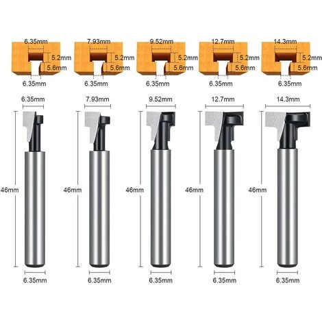 INCLURE LA LISTE Contenu de la livraison: 1 x fraise rainure en T pour vis hexagonales 1/2 « ; 1 x fraise rainure en T pour vis hexagonales 3/8 »; 1 x fraise rainure en T pour vis hexagonales de 5/16 .